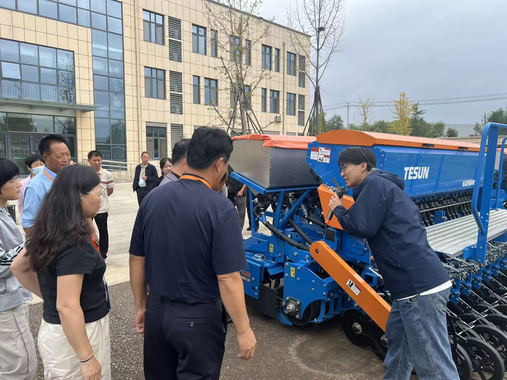 结合农机操作、智慧农业、产业链融合等需求,组织学员先后走进东营文通农机专业合作社、滨州国盛农业有限公司,学习农机安全操作规范,实地了解无人机高效飞防与小麦全产业链创新实践;深入滨州中裕食品有限公司、山东畛棒农业发展有限公司,观摩小麦三产融合与绿色循环发展路径,探索黑玉米特色产业与电商融合发展的典型经验。针对学员实操需求,还组织赴山东当康农业装备有限公司、中科滕森智能装备公司等教学基地现场操作智慧播种、高效施肥等先进农机设备,近距离体验科技赋能产业振兴的实践实效。